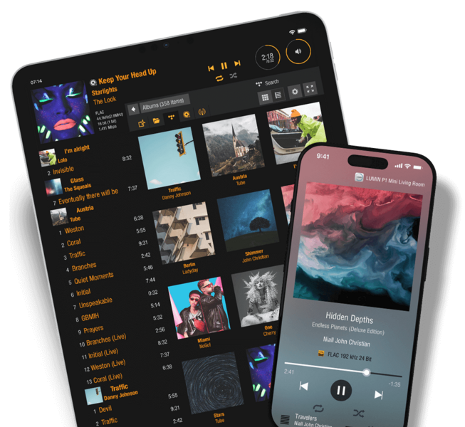 Zu den letzten großen Updates zählen: Qobuz Connect · KKBox · QQMusic · Audirvāna-Zertifizierung · TIDAL Max (Hi-Res FLAC) · Plex-Server-Unterstützung · FLAC-Lossless-Radiosender · verbesserte Spotify-Connect-Klangqualität · JPlay-iOS-Unterstützung – alles kostenlos für alle LUMIN-Nutzer.